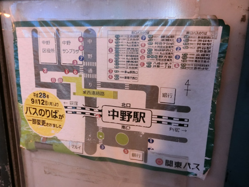 中野駅は南口・北口の【バス停】の数は合わせて